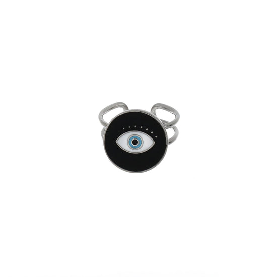 Anel Ajustável Coby com olho grego azul com fundo preto.