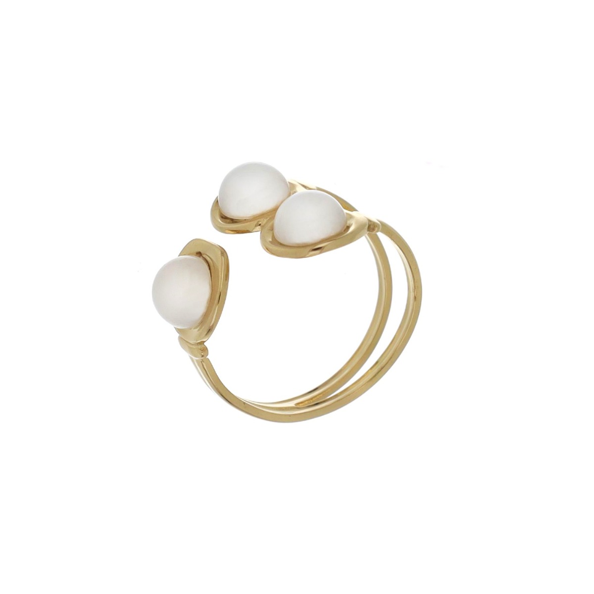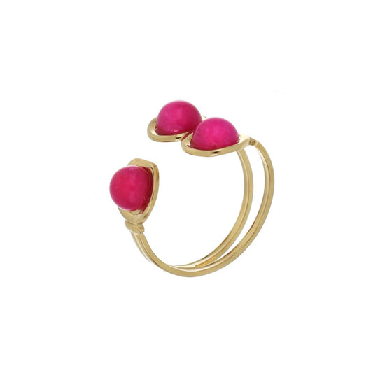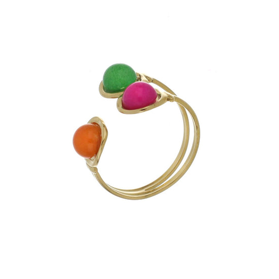 Anel ajustável com três pedras coloridas.
