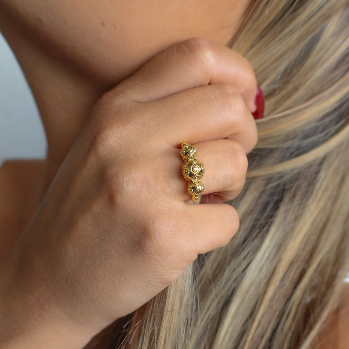 Anel em aço com Bolas de Viana em Banho de Ouro.