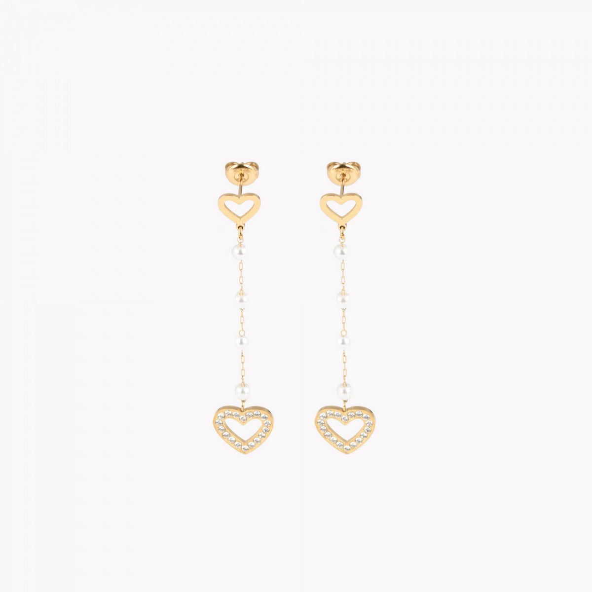 Brincos com estrela com pérolas com pendente coração com zircônias.