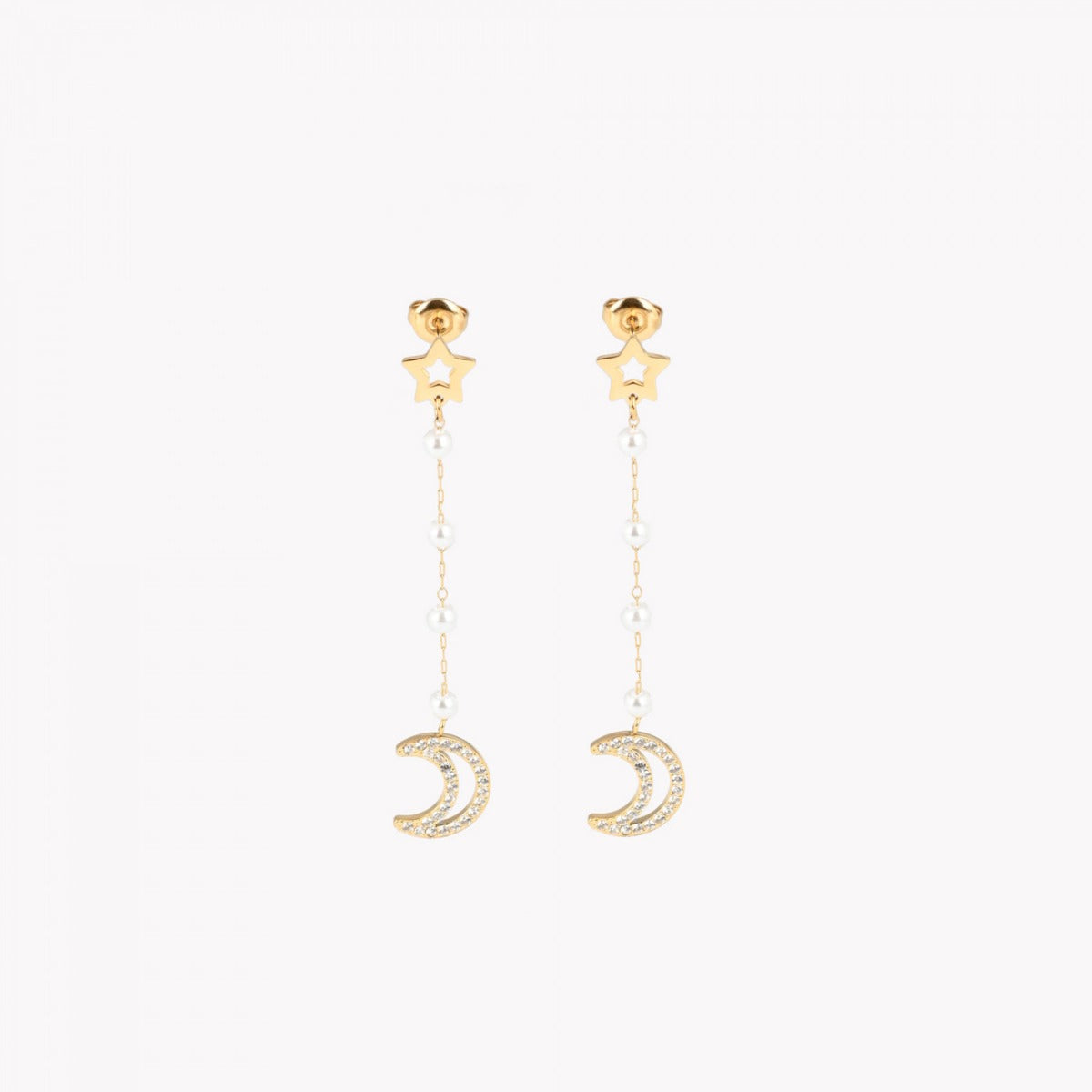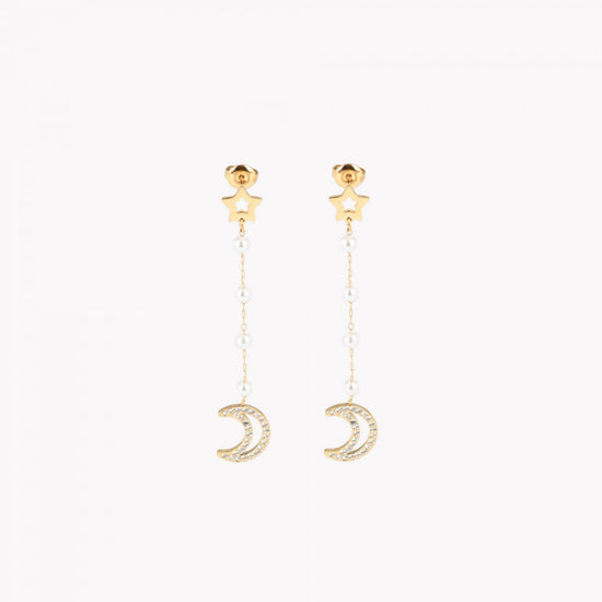 Brincos com estrela com pérolas com pendente lua com zircônias.