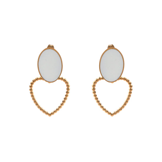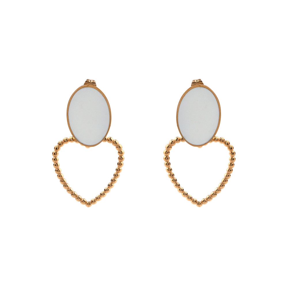 Brinco com pendente oval com cor , projetado com um pendente coração.