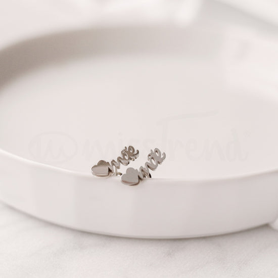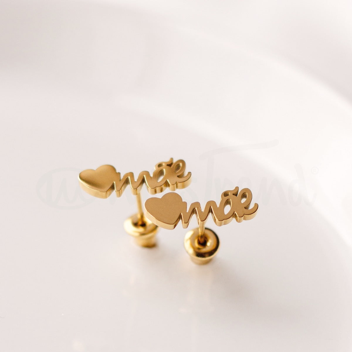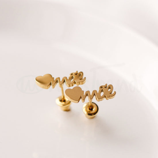 Brincos Coraçon com dedicatória Mãe em Aço com coração.