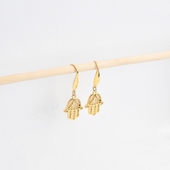 Brincos com pendente Mão de Fátima em Banho de Ouro.