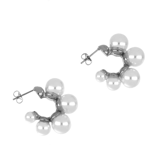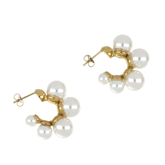 Brincos meia argola com pérolas grandes. Um design ousado que irá destacar o seu look do dia.