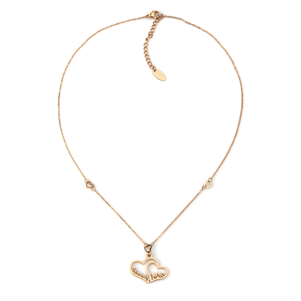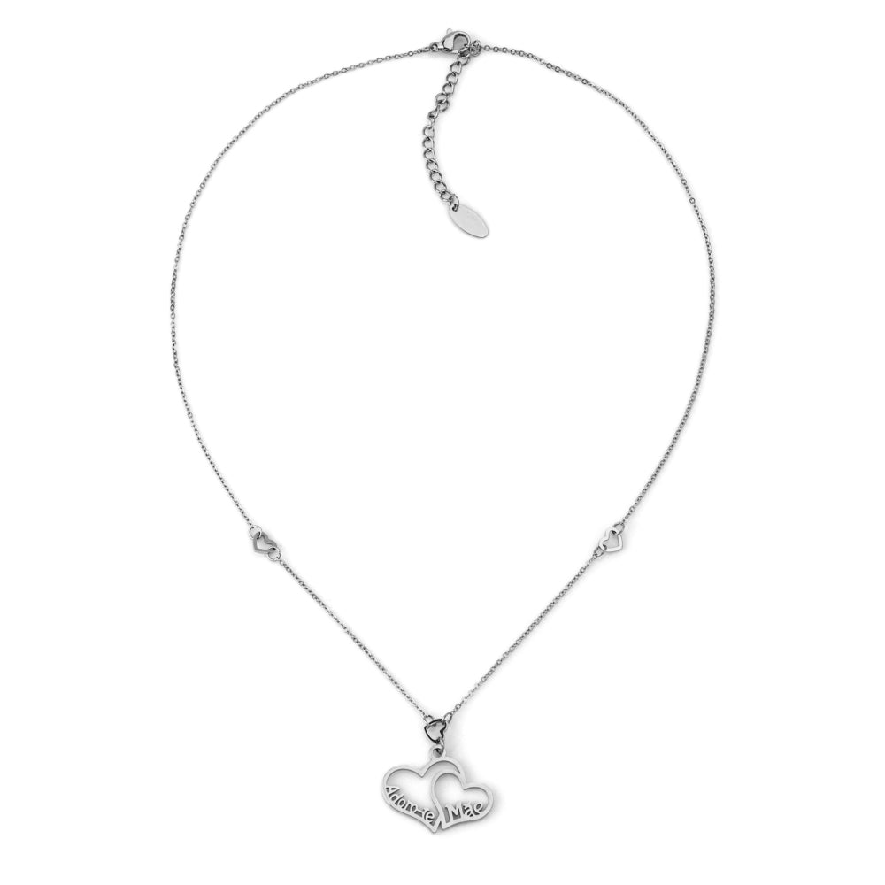 Colar com dois corações com dedicatória Adoro-te Mãe. Artigo em aço inoxidável.