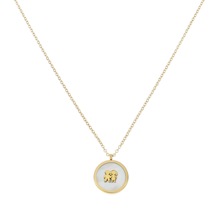 Colar ajustável com pendente redondo com casal com fundo madre pérola.