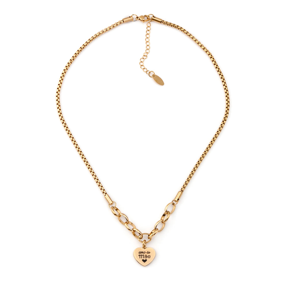 Colar projetado com pendente em formato de coração com dedicatória Amo-te Mãe.