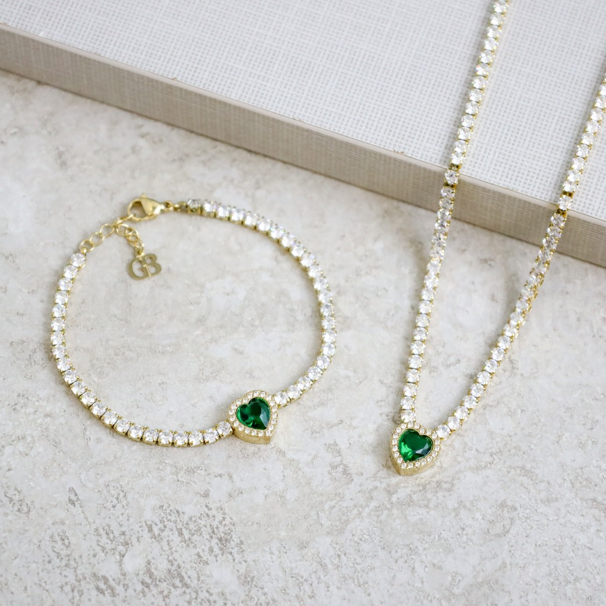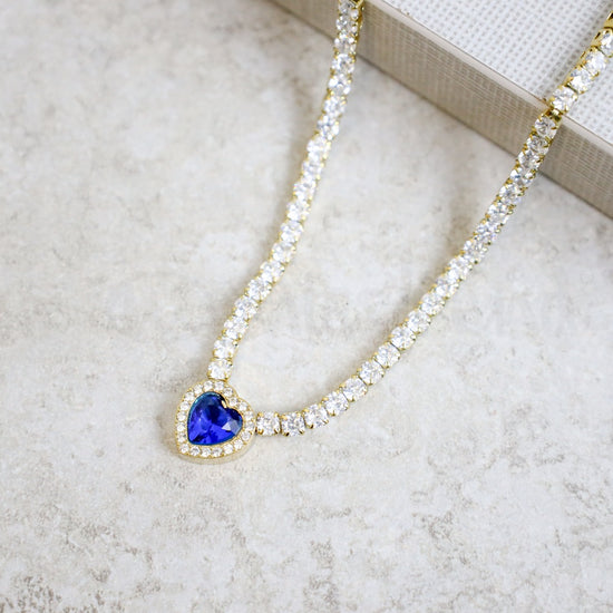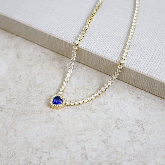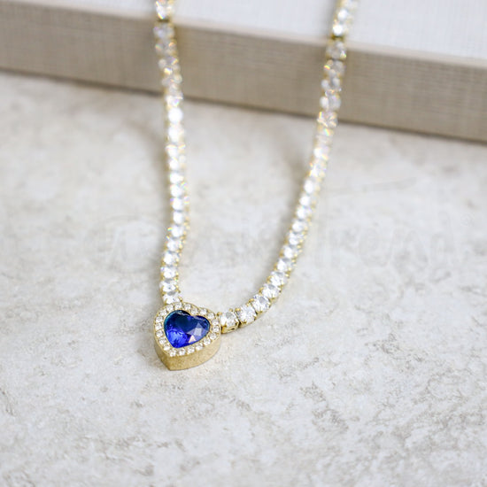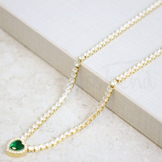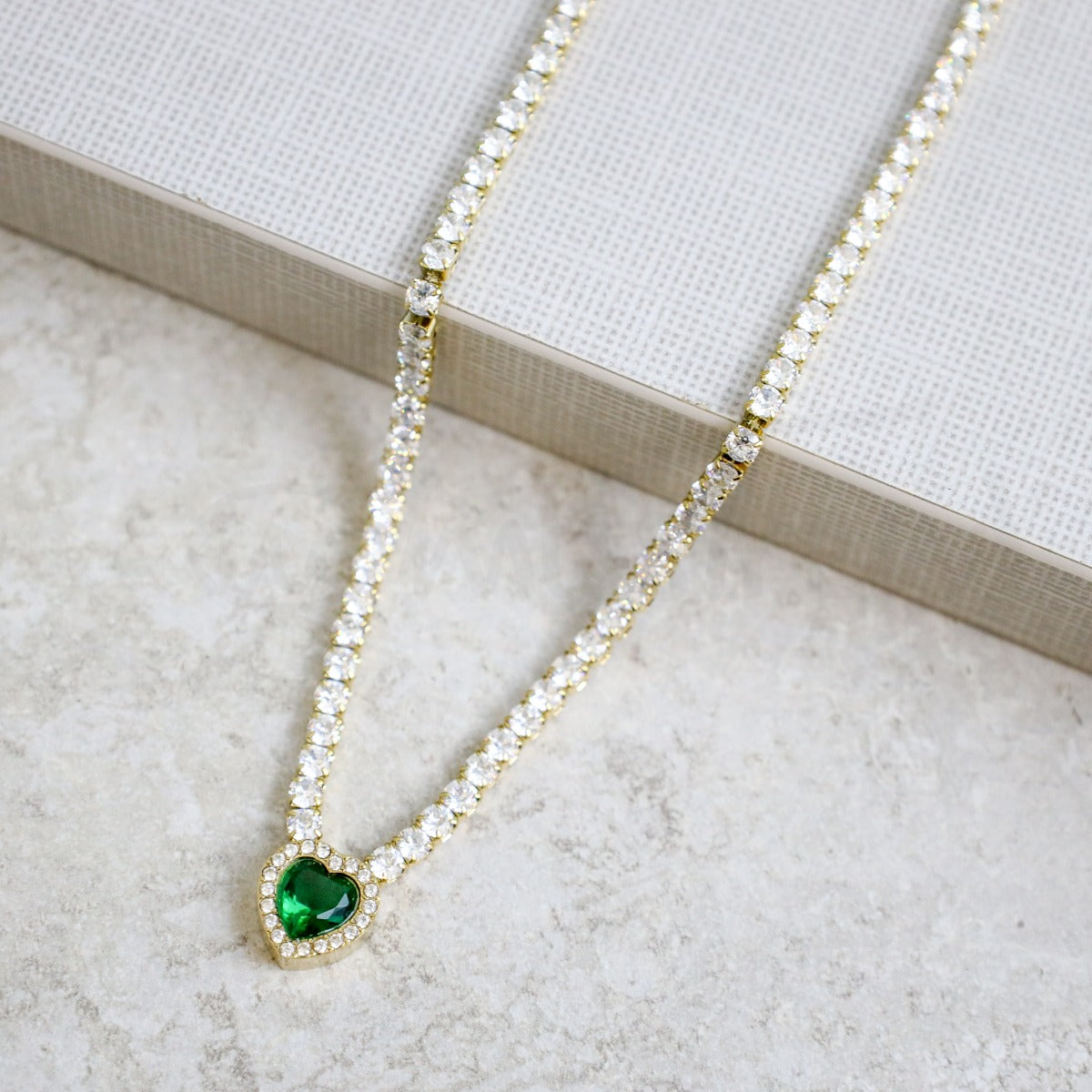 Colar Bellagio elegante com zircônias com pendente coração com pedra colorida.