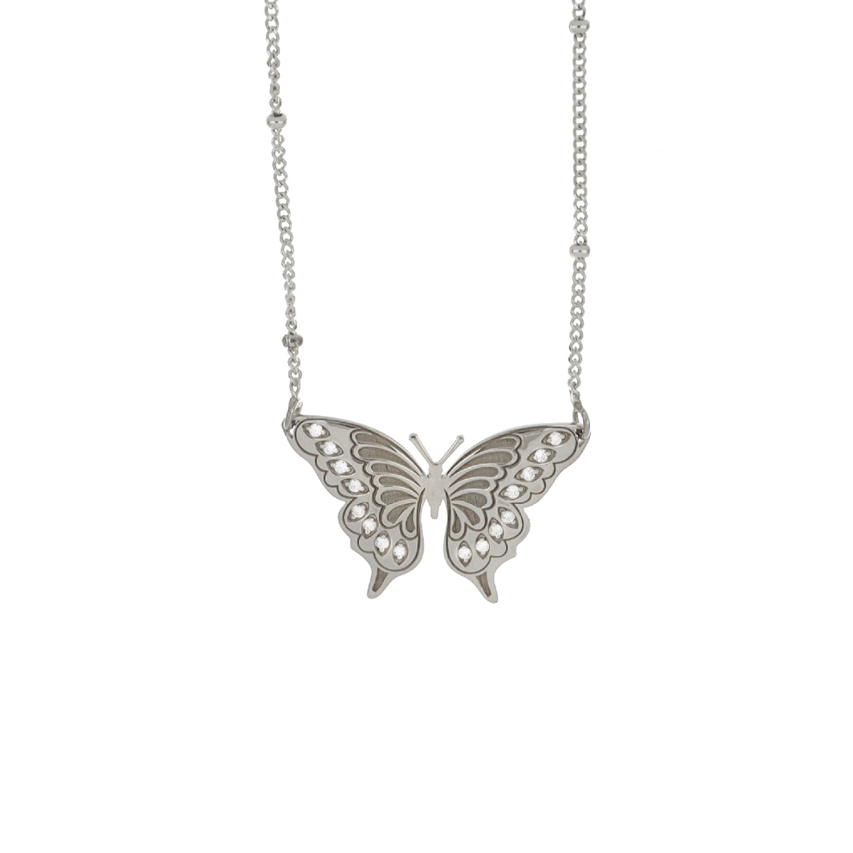 Colar em prata S925 com pendente borboleta em prata com zircônias cravadas nas asas.