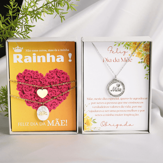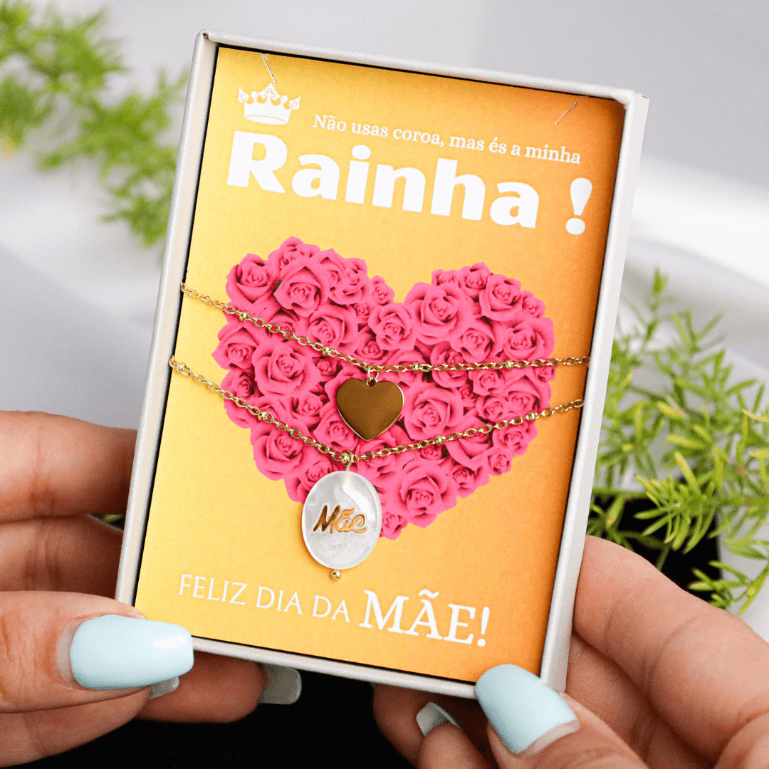 Colar Stone com 2 tiras com pendente Mãe em Madre Pérola e coração em aço.