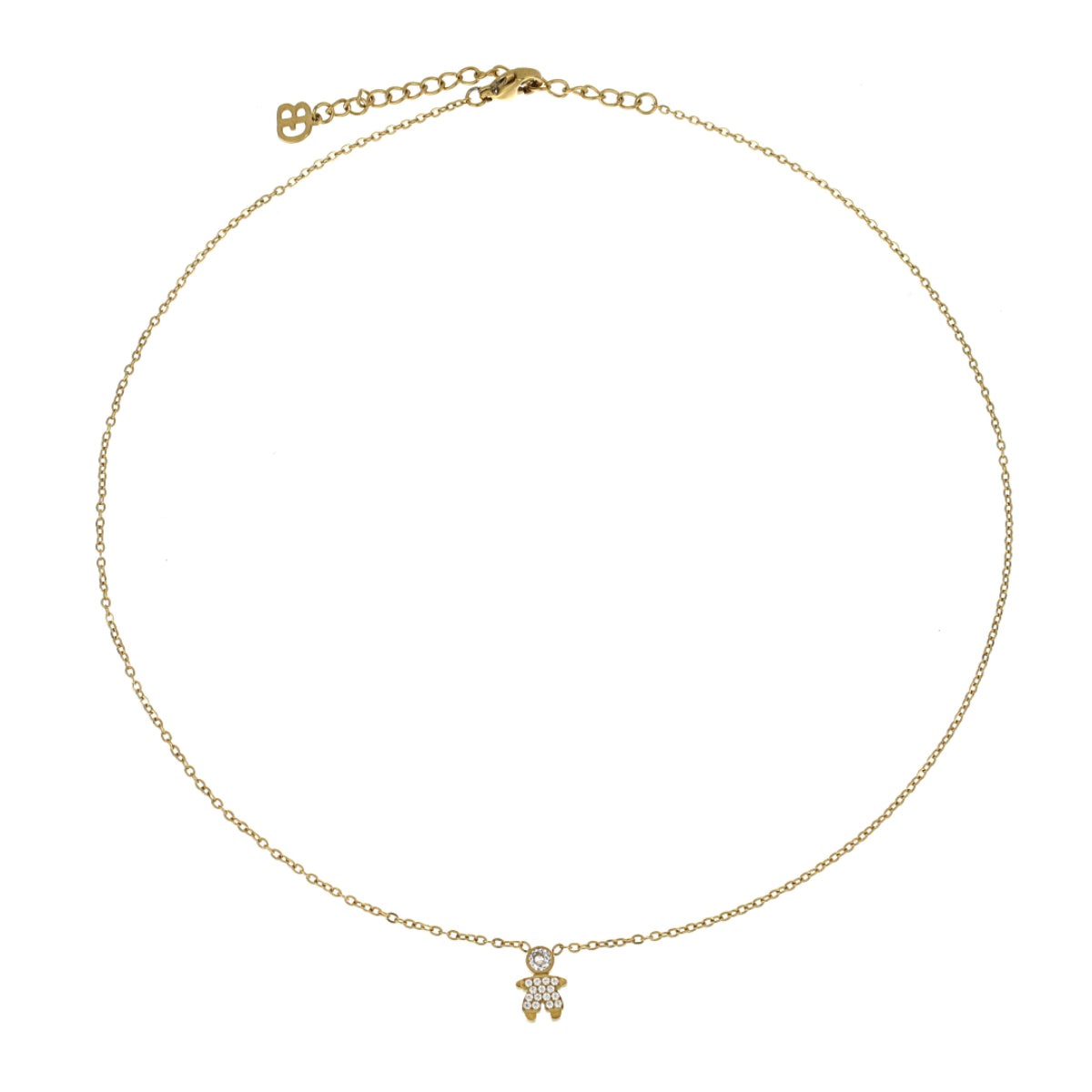 Colar ajustável com pendente menino ou menina com zircônias.