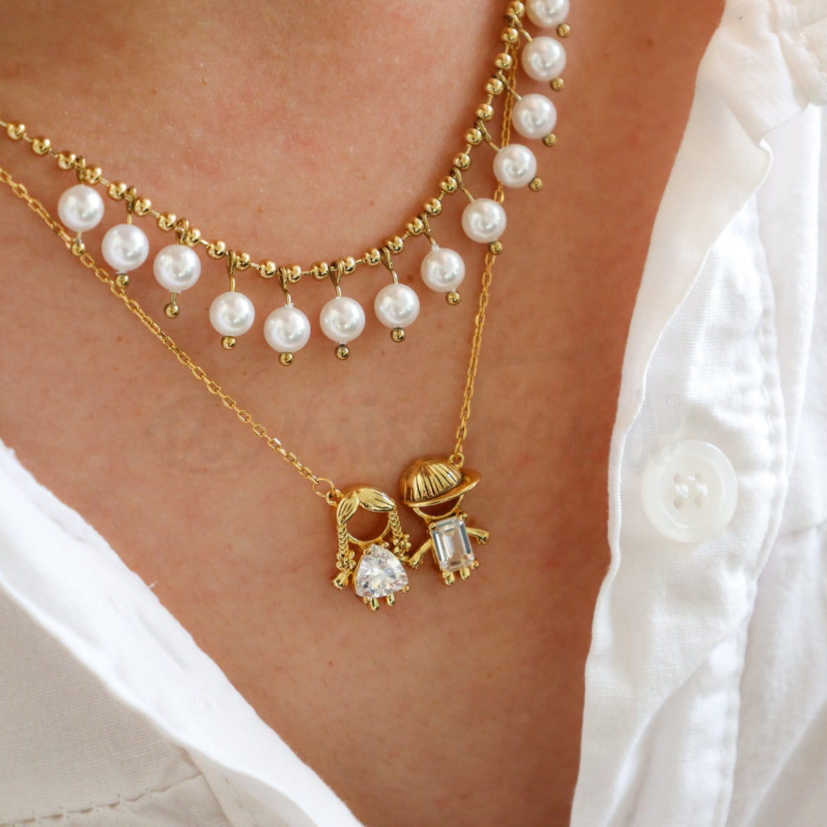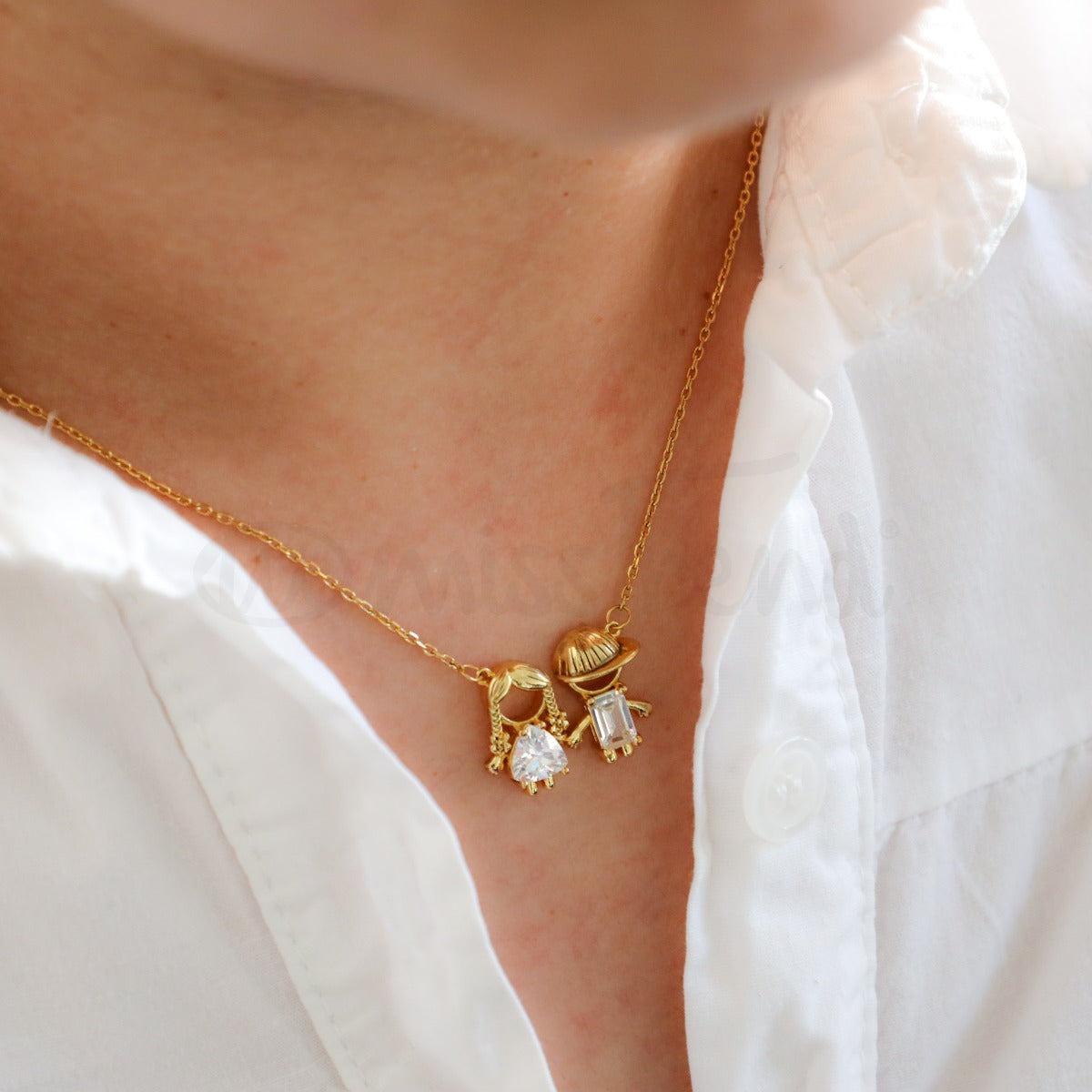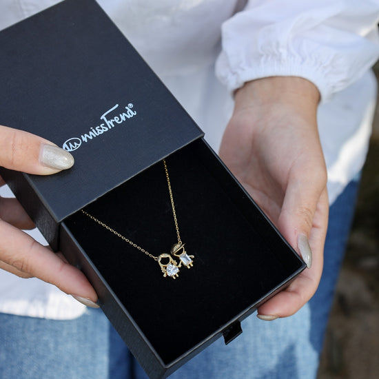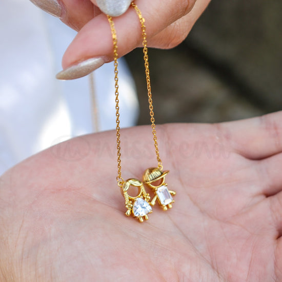 Colar ajustável com pendente meninos, meninas ou casal com zircónias.