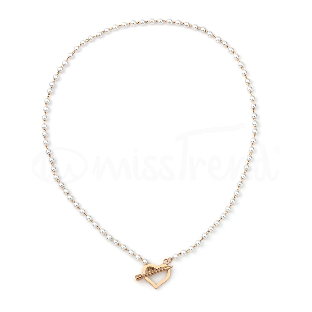 Colar Flesh com corrente com pérolas pequenas com pendente coração preso por um flecha.