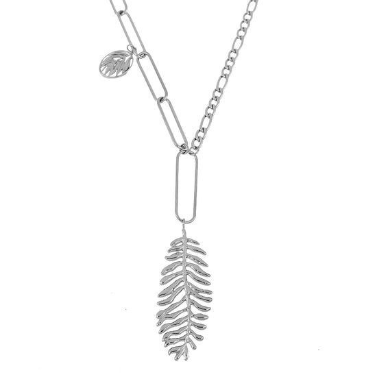 Colar Leaf II com pendente folha. Projetado com duas tiras, composta por argolas de diferentes tamanhos para um design moderno e ousado.