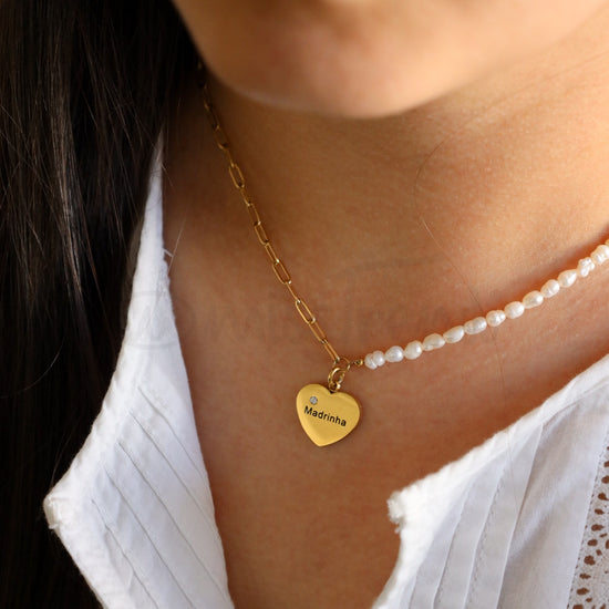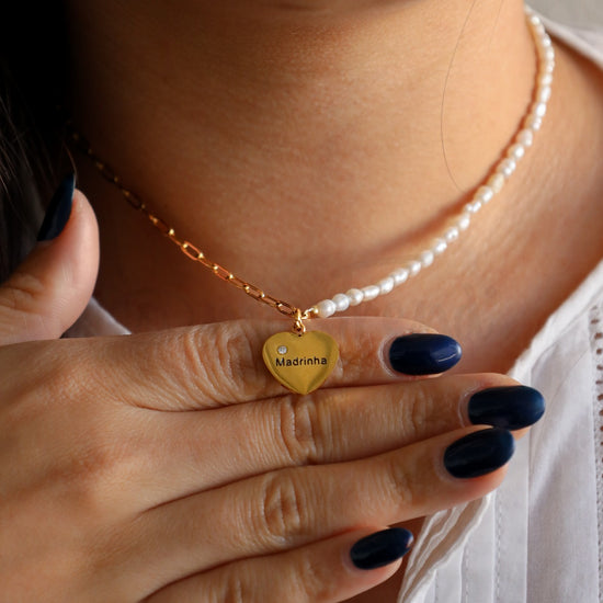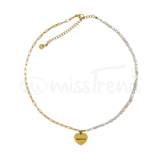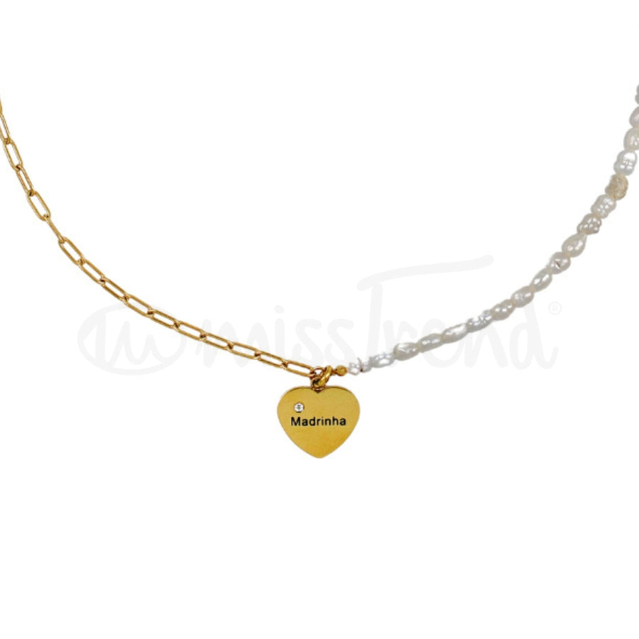 Colar com pendente em forma de coração com dedicatória Madrinha.