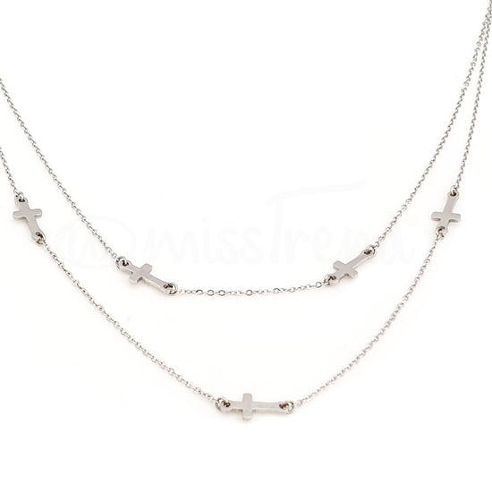 Colar Nirvana com pendentes cruzes com duas correntes. Artigo em aço inoxidável.
