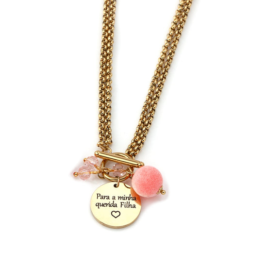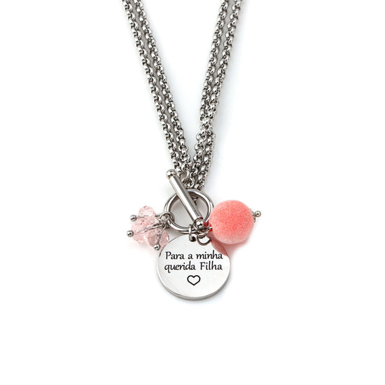 Colar com dedicatória " Para a minha querida filha " com vários pendentes.
