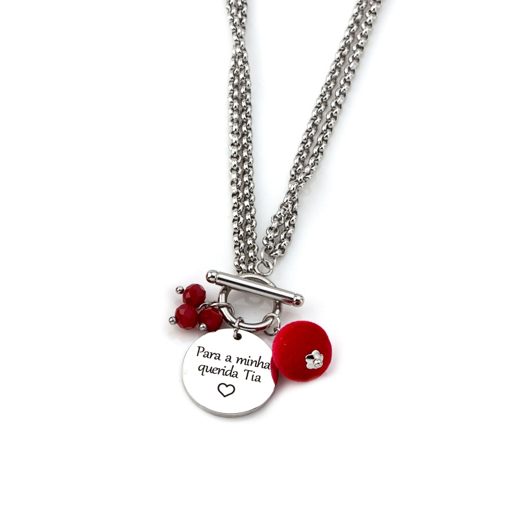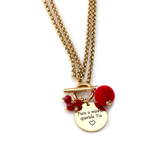 Colar com dedicatória " Para a minha querida Tia " com vários pendentes.