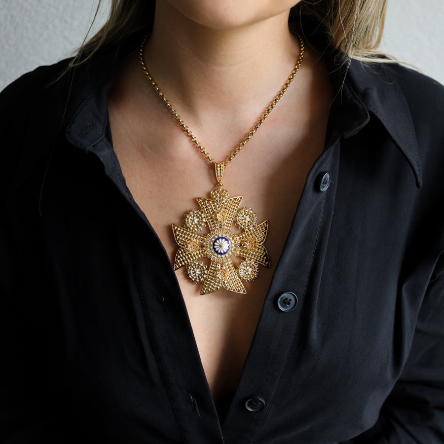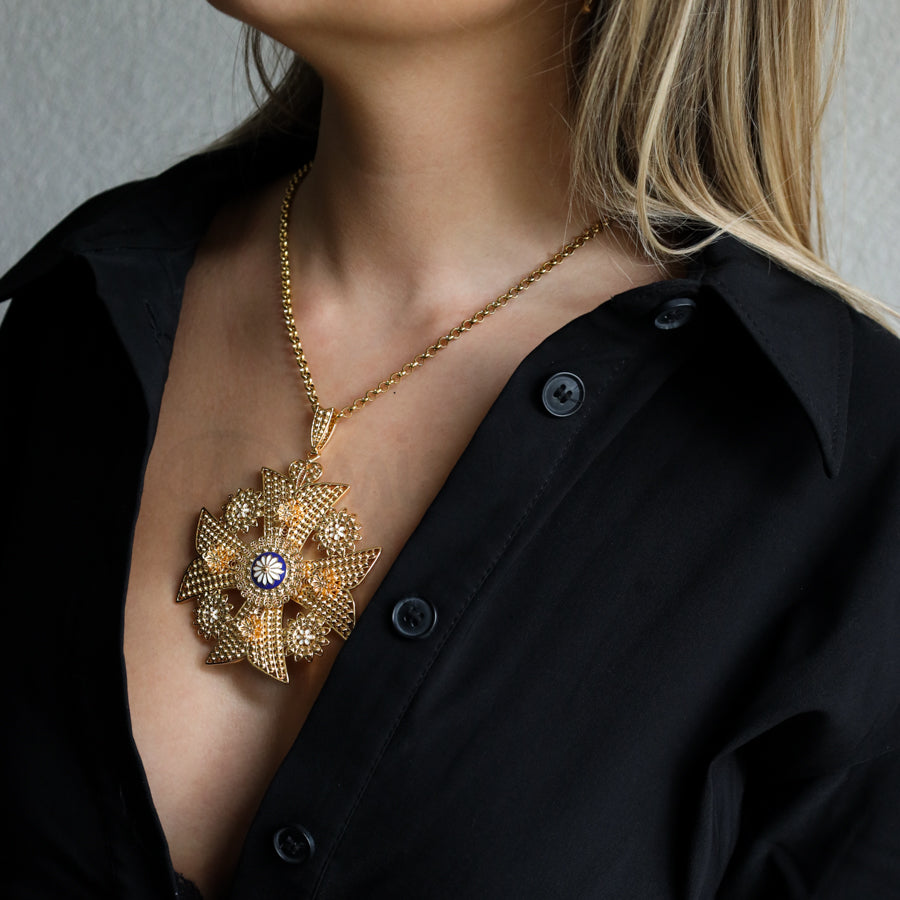 Colar ajustável em banho ouro com pendente Queen caramujo azul.