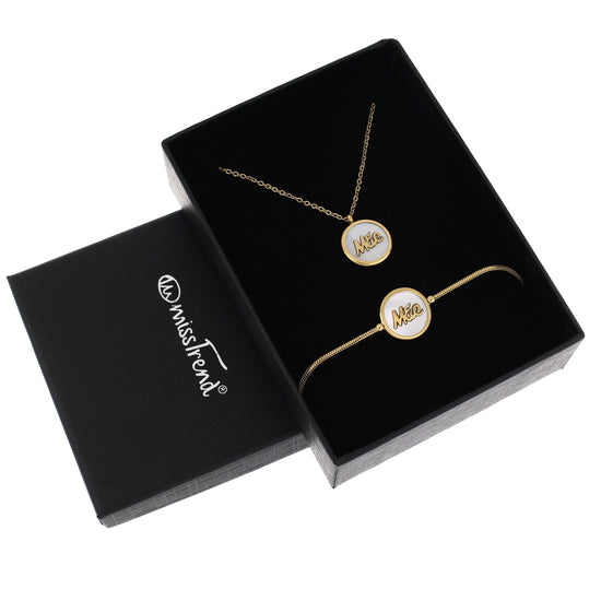 Coleção com pendente madre pérola com dedicatória Mãe.