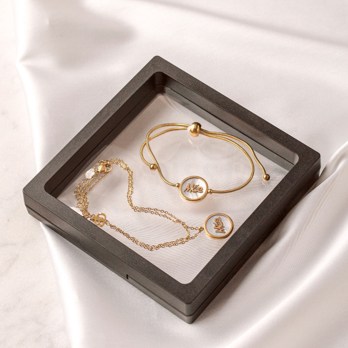 Edição especial destinada ao dia da mãe. Um conjunto exclusivo 3 em 1 com colar + pulseira + moldura.
