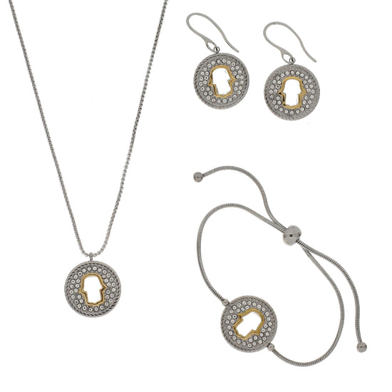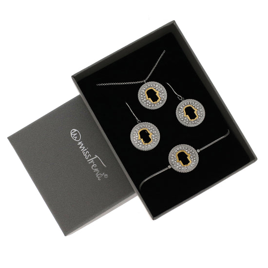 O conjunto Mão de Fátima inclui colar + pulseira +brincos.
