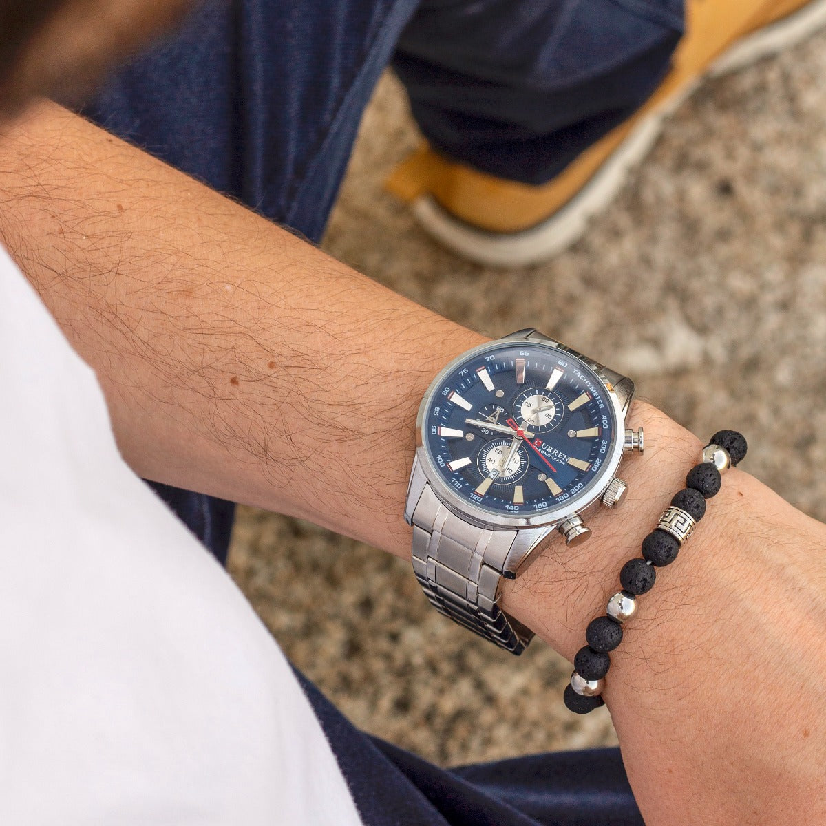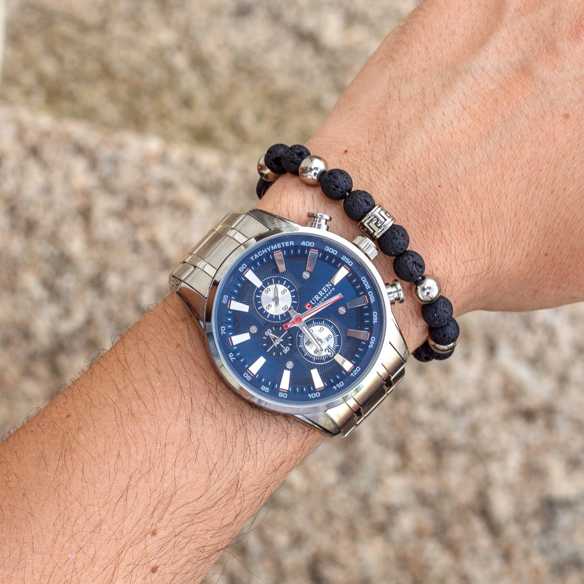 O relógio Curren Spectre é um modelo minimalista, mas também masculino e ousado. Com 3 sub-mostradores funcionais e também função de data. Resistência à água: 3 ATM