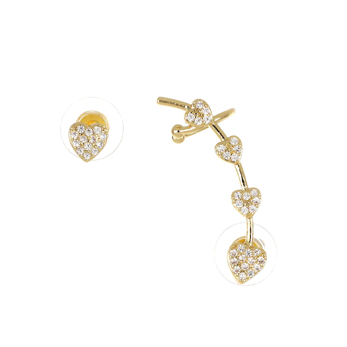 Escalador de orelha Duo - com escalador com um furo com quatro corações + brinco coração.
