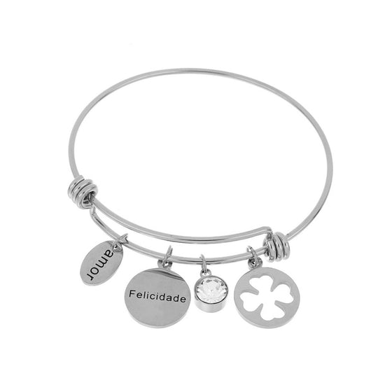Escrava Trevo Amor e Felicidade em Aço - Prateada