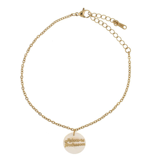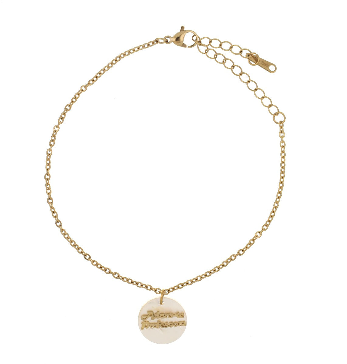 Pulseira com pendente madre pérola com designação Adoro-te Professora.