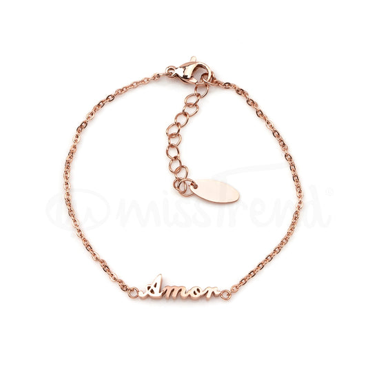 Pulseira com dedicatória Amor em aço. Um design simples e elegante.