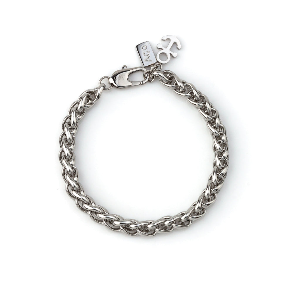 Pulseira masculina Antártica II em aço prateada. Artigo em aço inoxidável com pendente de âncora e chapa de aço.