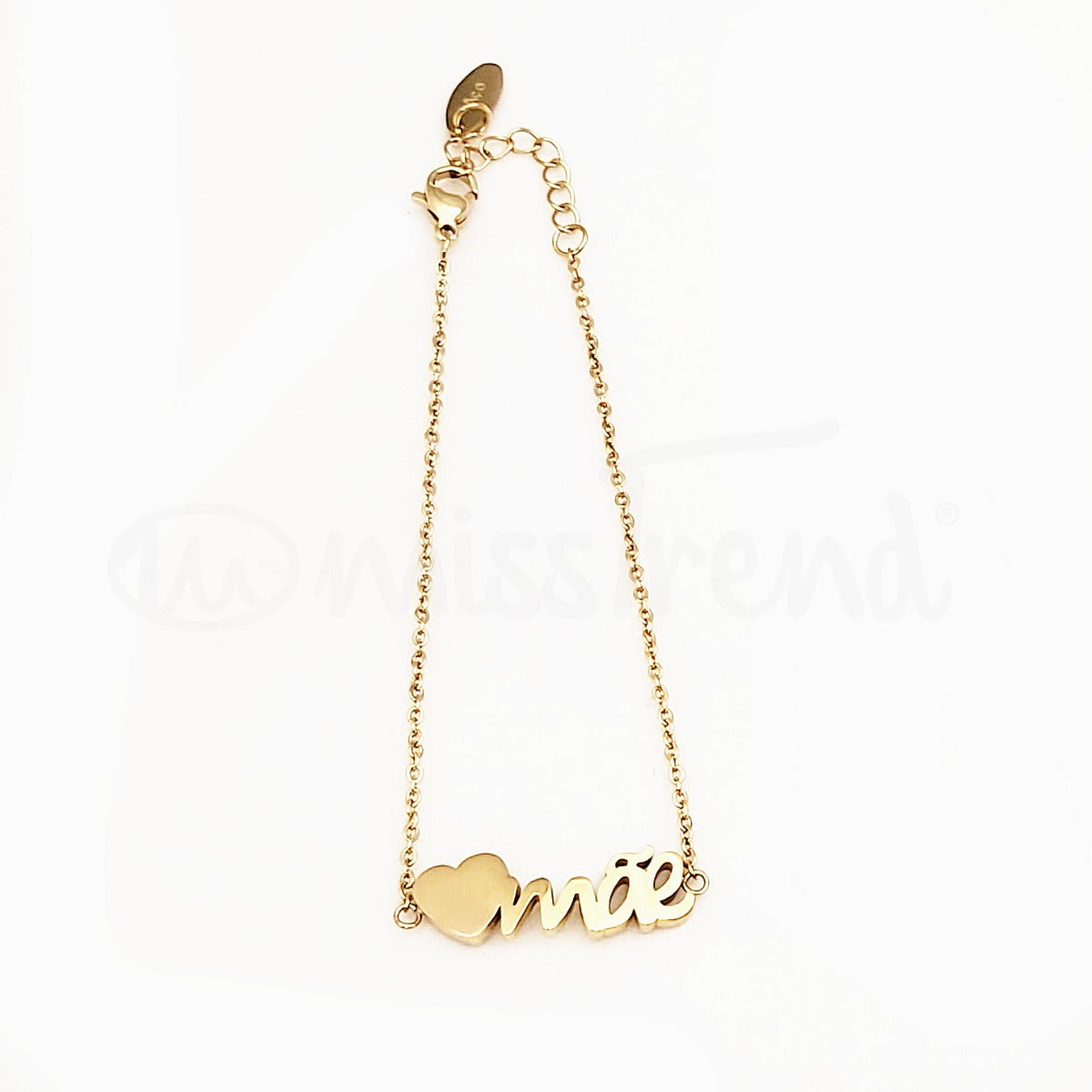 Pulseira Coracon com dedicatória mãe em aço, com coração.