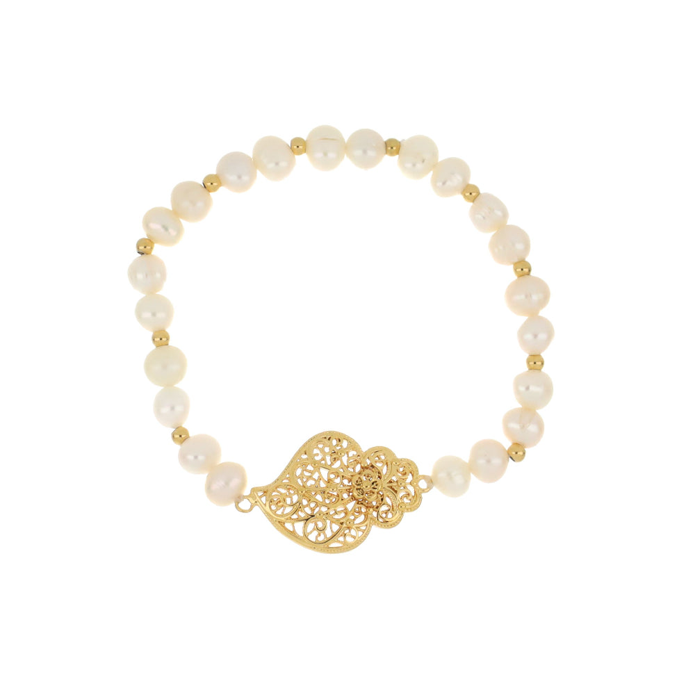 Pulseira com pérolas de água doce com Medalha de Viana de 26mm em Banho de Ouro.