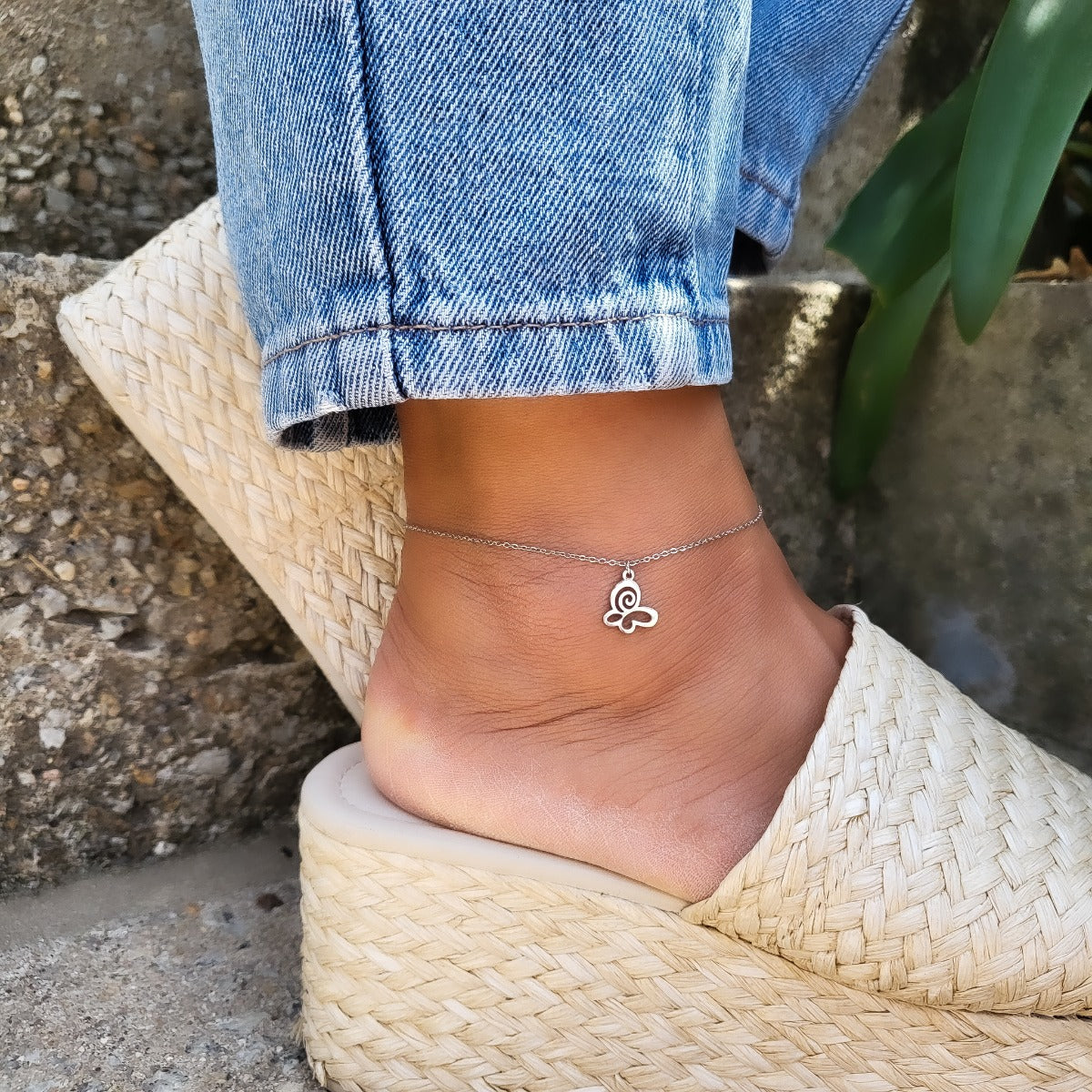 Pulseira Pé Butterfly em Aço