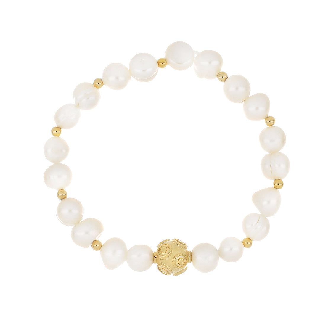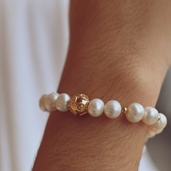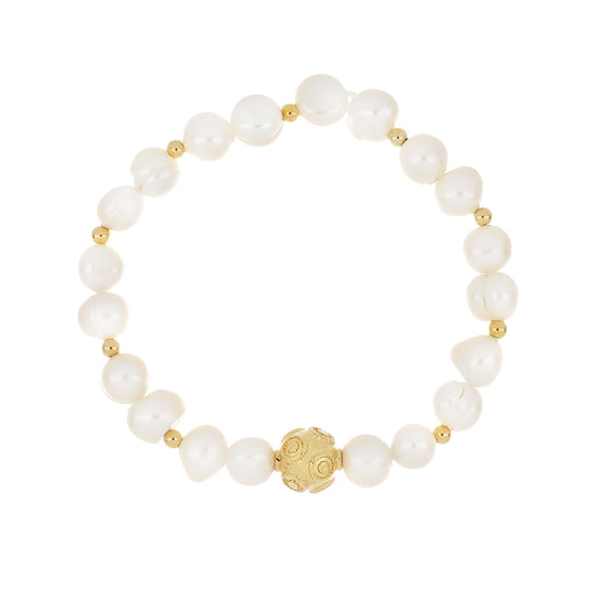 Pulseira com pérolas de água doce com Bola de Viana de 8mm em Banho de Ouro.