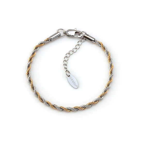 Pulseira entrelaçada em dois tons com pendente com designação Aço.