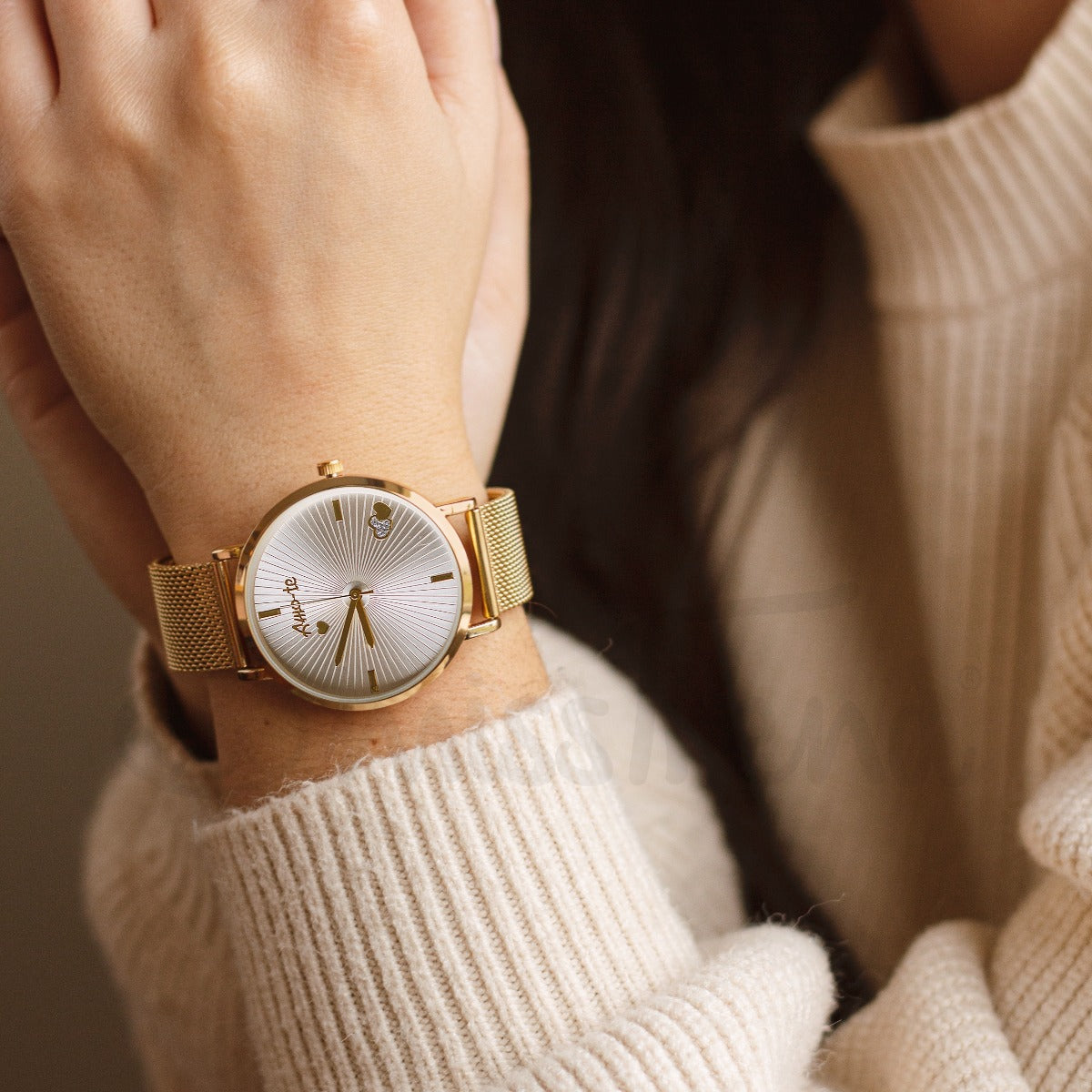 Relógio com dedicatória Amo-te. Um modelo elegante e romântico.