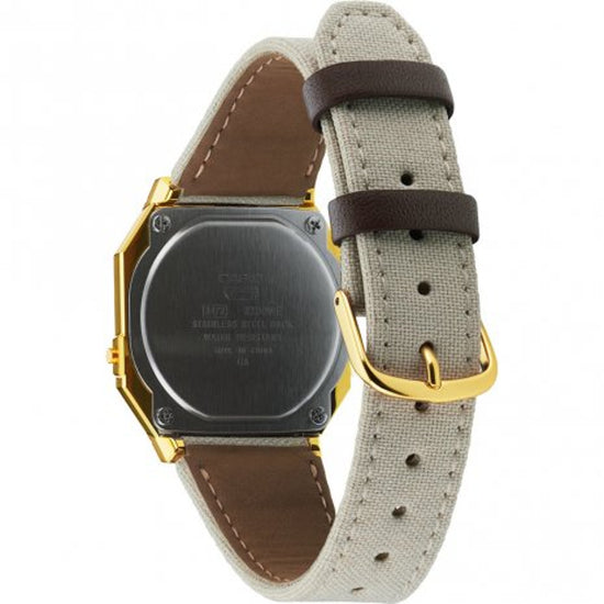 É utilizado um díodo luminoso (LED) para iluminar a superfície do relógio. A caixa de resina é o ideal para o dia-a-dia. É durável, leve e relativamente insensível ao frio, calor ou outras influências externas.
