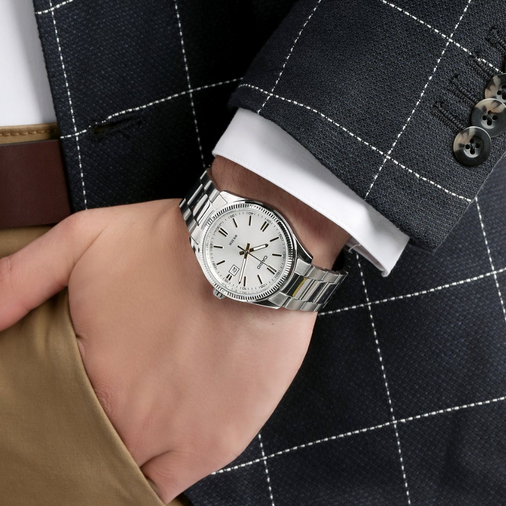 O vidro mineral robusto e anti riscos protege o relógio de danos inestéticos.