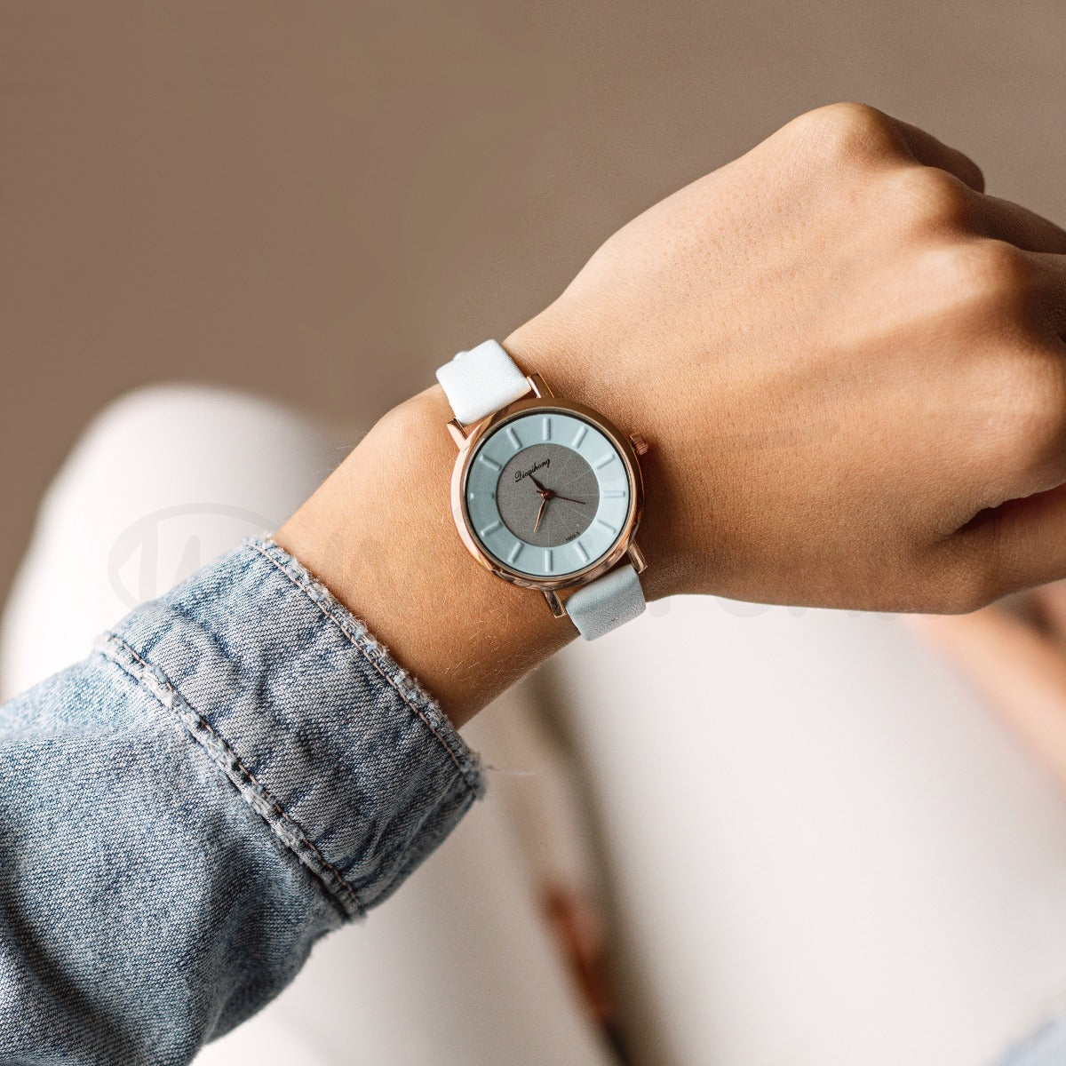 Um design moderno e discreto. Composto por uma bracelete em pele sintética com fecho fivela de um pino.
