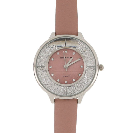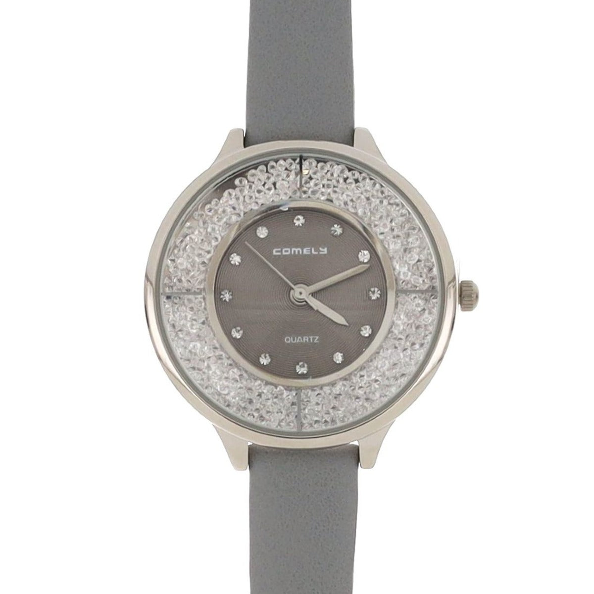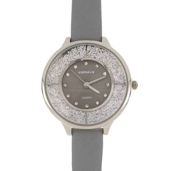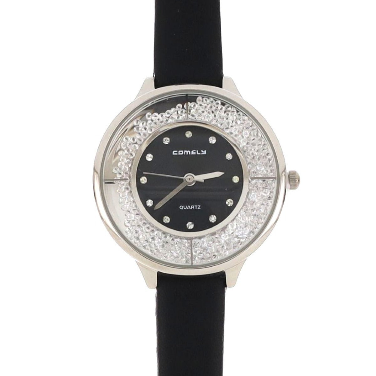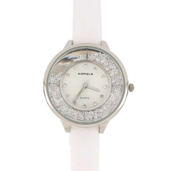 Relógio Crystal elegante e moderno com cristais soltos no interior do visor para um look ousado. Composto por uma bracelete em pele sintética