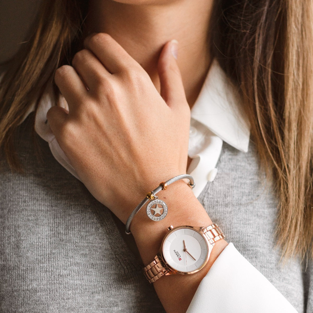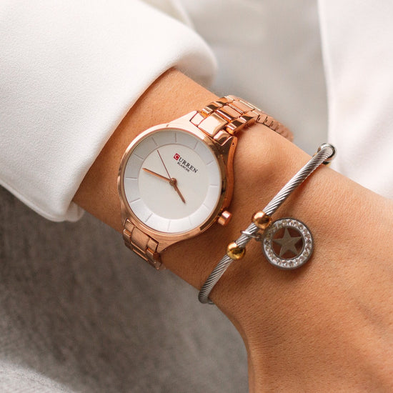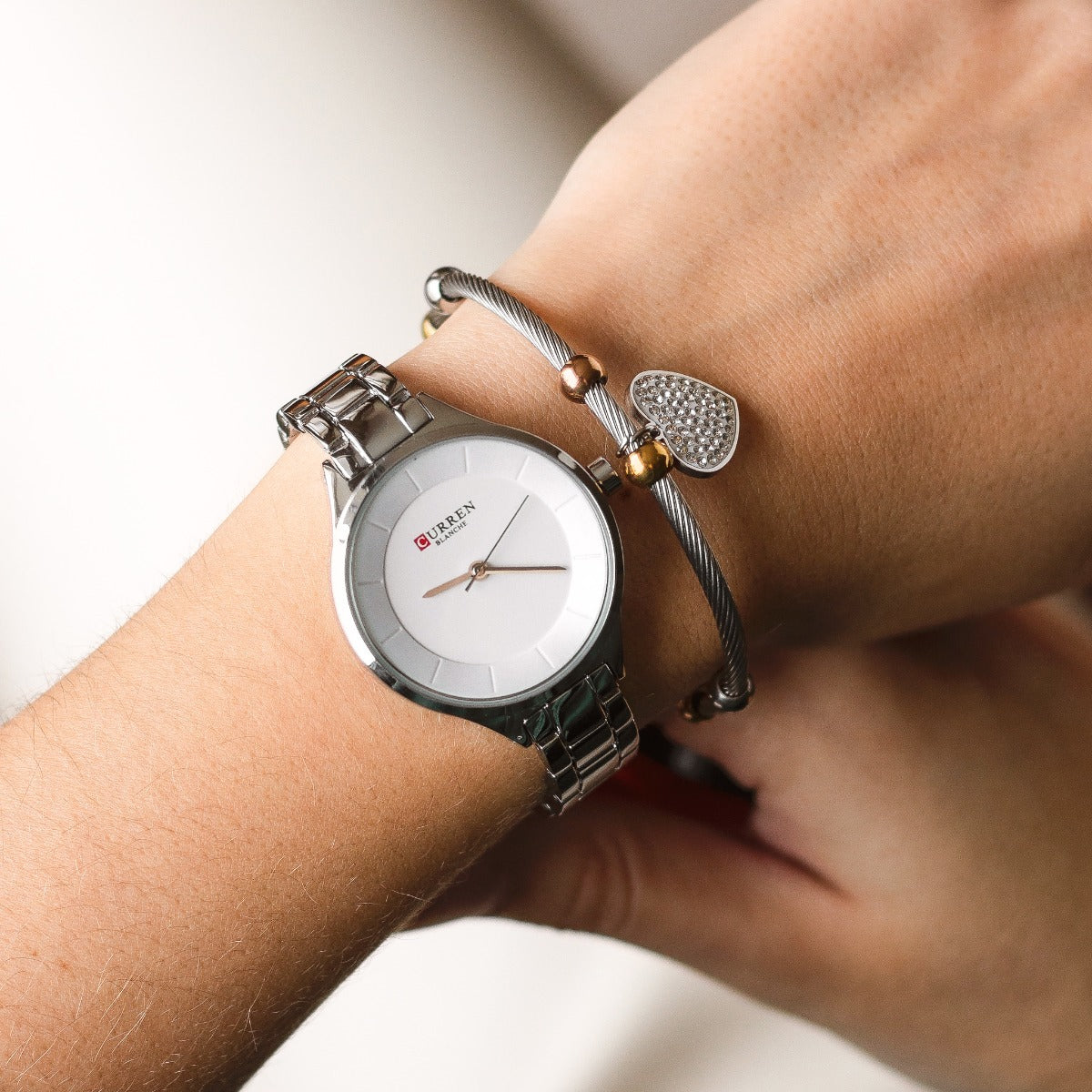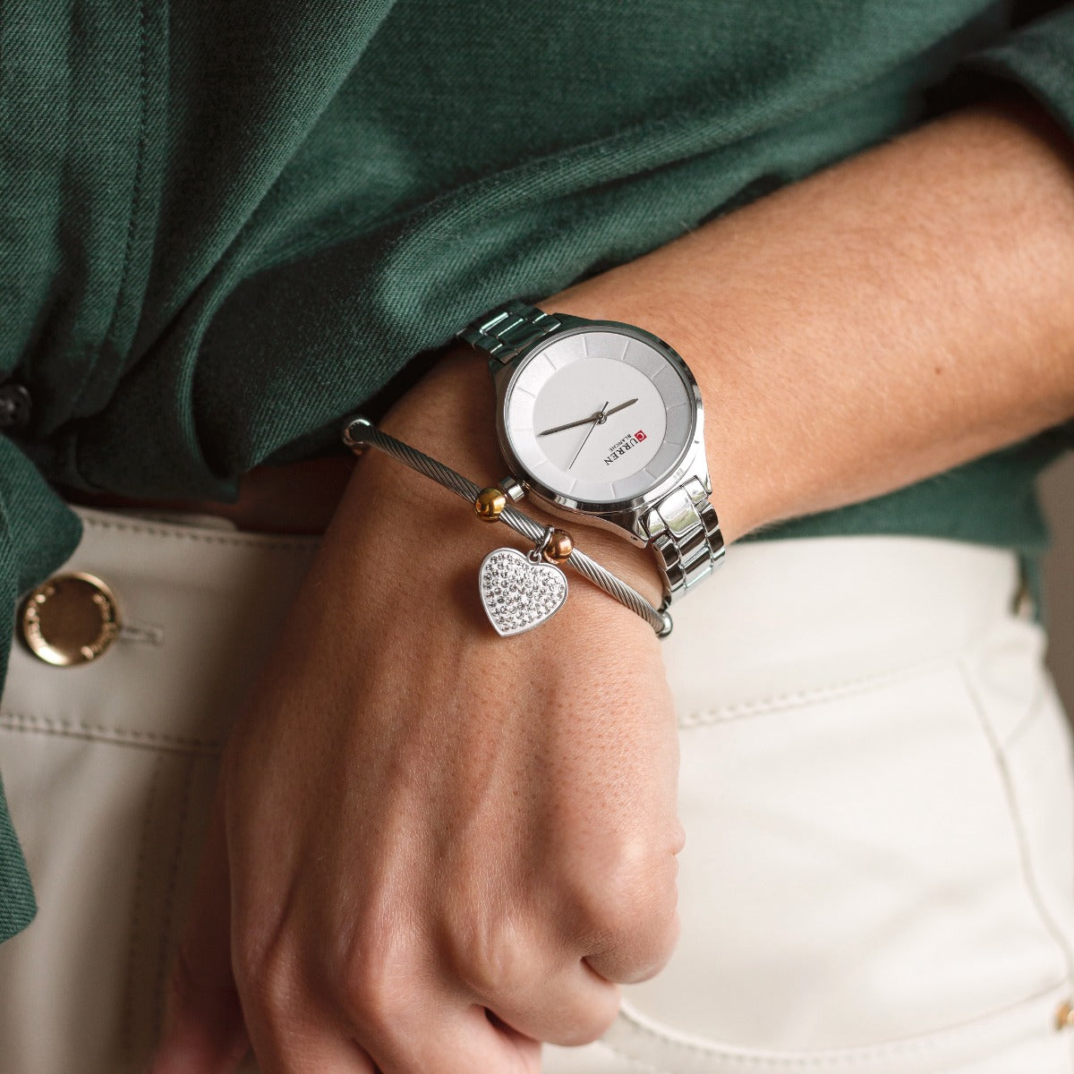Relógio Curren Elegance elegante e simples, ideal para o dia a dia. Em aço inoxidável.
