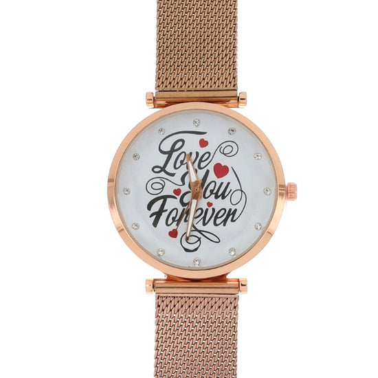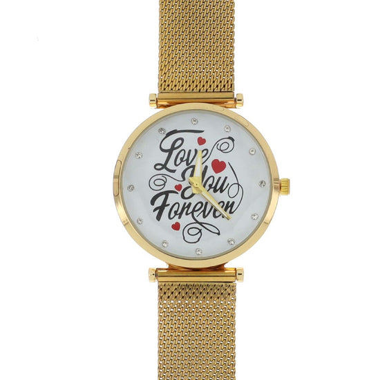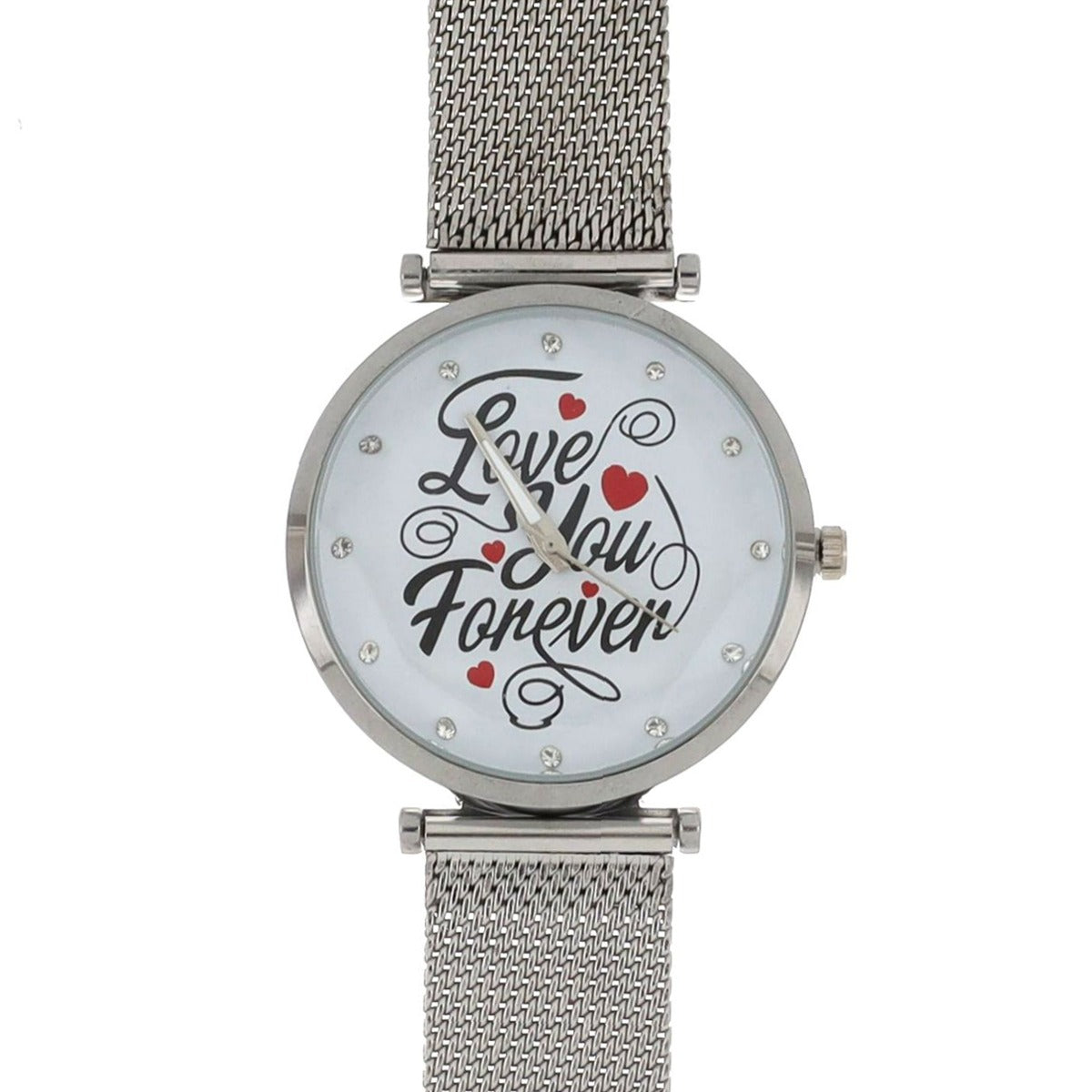 Relógio com frase Love You Forever composto por uma bracelete em aço.