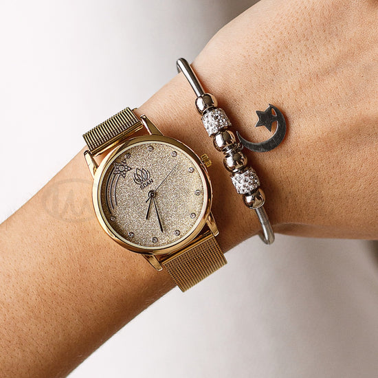 O relógio Shooting Star é composto por uma bracelete em aço com fecho gancho. Um design inspirado na galáxia.