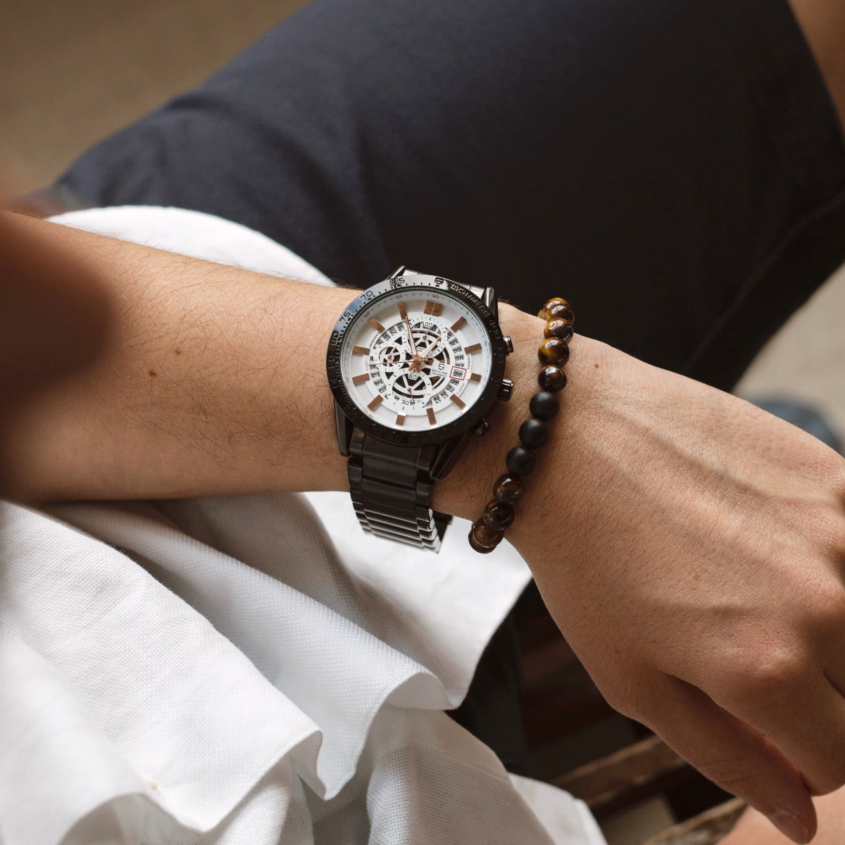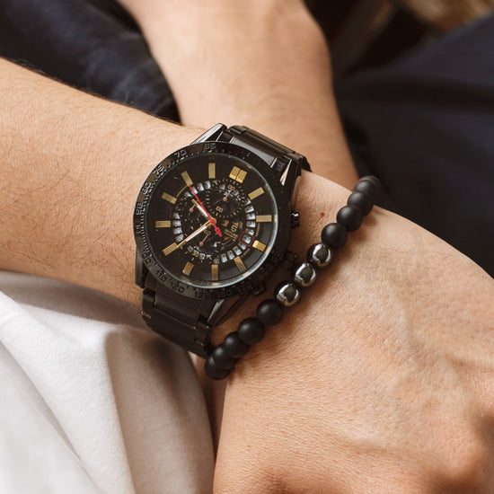O relógio Skyline Valente é um modelo masculino ousado e moderno. Com 3 sub-mostradores com função cronógrafo e com função de data.