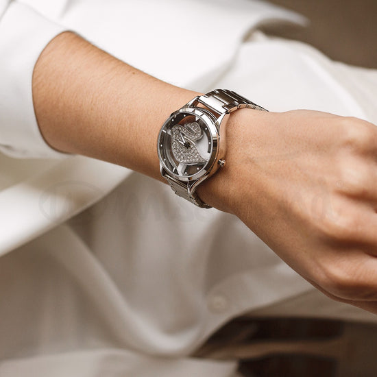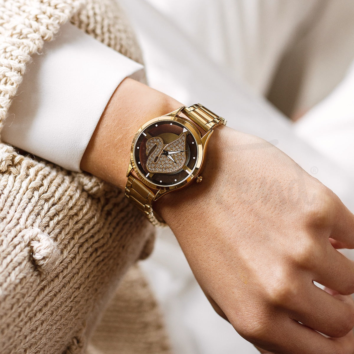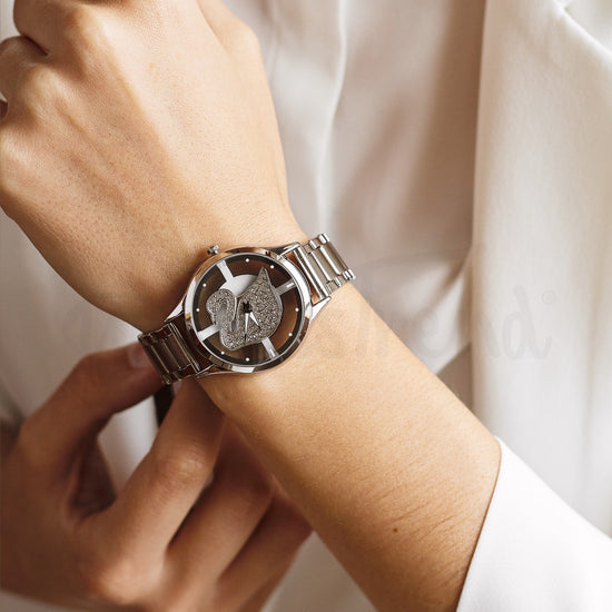 O Relógio Swan é um modelo extravagante e único. Com um mostrador transparente com um cisne giratório, o mesmo se movimenta conforme o movimento do seu pulso. Composto por uma bracelete em aço ajustável por elos.