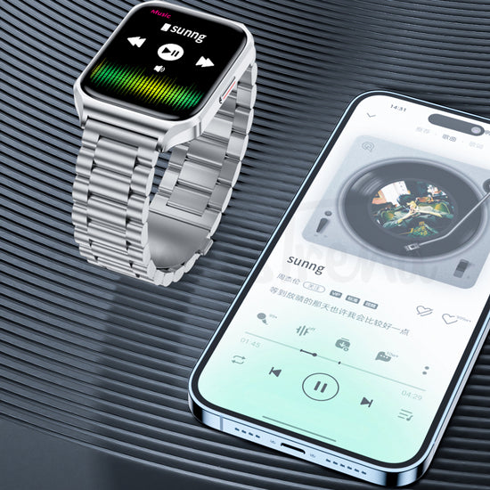 Concebido com uma bracelete de elos em aço tornando-o mais clássico para a sua vida quotidiana, e outra bracelete em silicone de oferta, adequada para praticar atividade física.